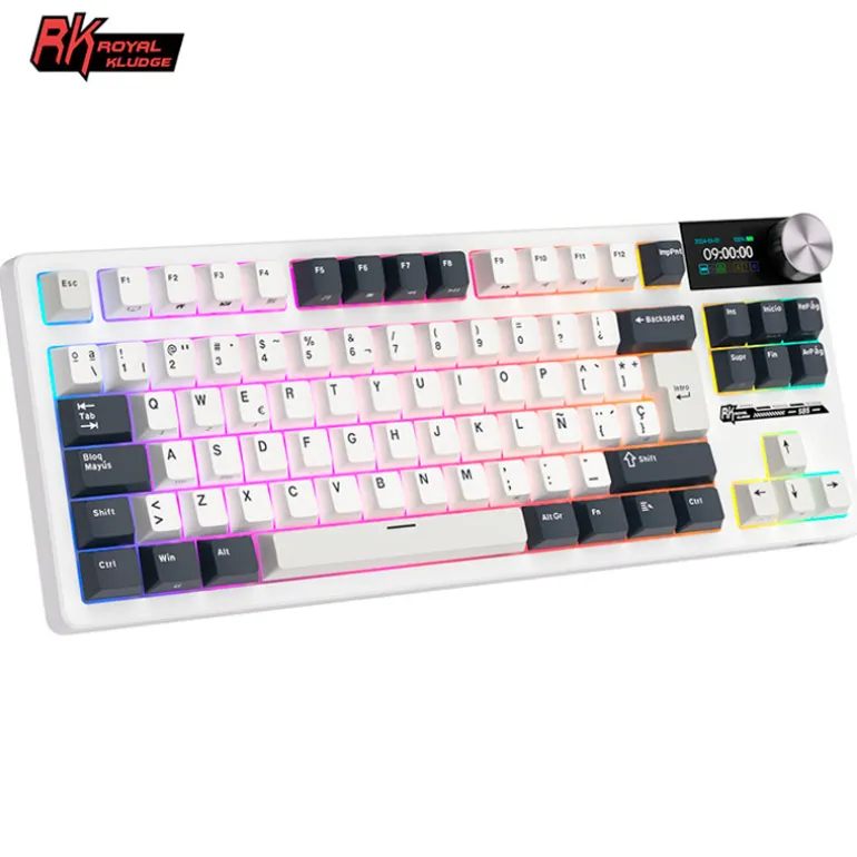 Teclado para Mac y Windows Royal Kludge RKS85 ISO-ES RGB Hot-Swappable Switch Cloud Wireless White Night