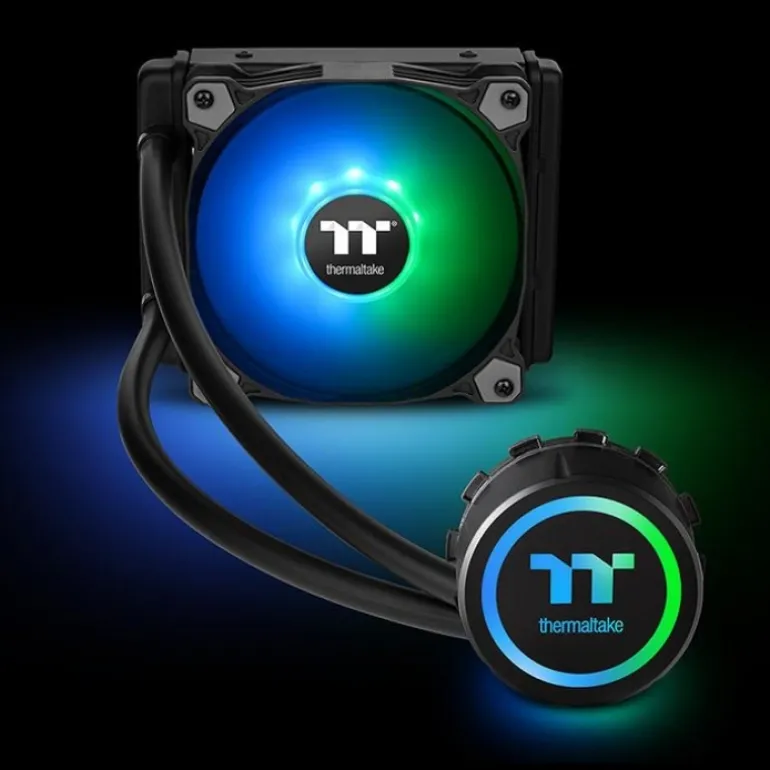 Thermaltake Water 3.0 120 ARGB Sync Edition viene con un ventilador de 120 mm con un radiador de gran superficie, un bloque de agua de alto rendimiento y una bomba para la máxima refrigeración de la CPU. El ventilador Pure ARGB incorporado cuenta con cuchillas de compresión, cojinetes hidráulicos y LED de 16.8 millones de colores que están listos para sincronizarse con las placas base compatibles con 5V RGB de Asus, Gigabyte, MSI y AsRock. Los usuarios pueden cambiar fácilmente los efectos de iluminación RGB utilizando el controlador ARGB que se incluye en el paquete, o mediante ASUS Aura Sync, GIGABYTE RGB Fusion, MSI Mystic Light Sync y AsRock Polychrome. La serie Water 3.0 ARGB Sync Edition permite a los usuarios disfrutar de un mejor rendimiento de refrigeración y una mayor protección de la CPU.