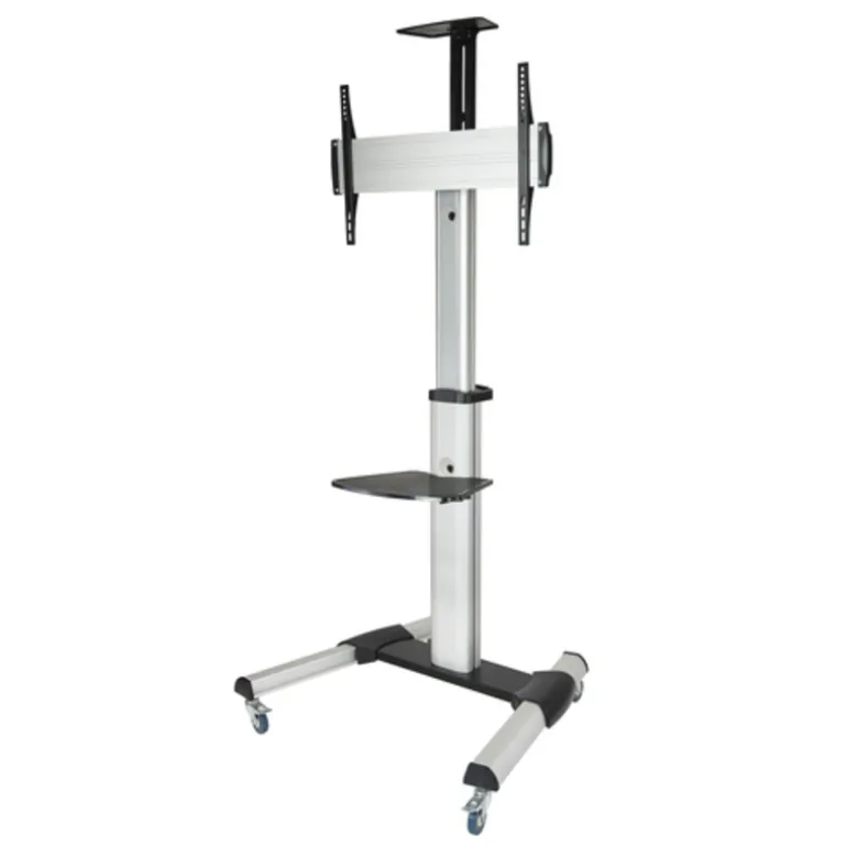 Soporte aluminio de suelo para monitor / TV LCD, PLASMA y LED (37″-70″) en posición vertical y horizontal con bandeja para DVD y soporte de camara