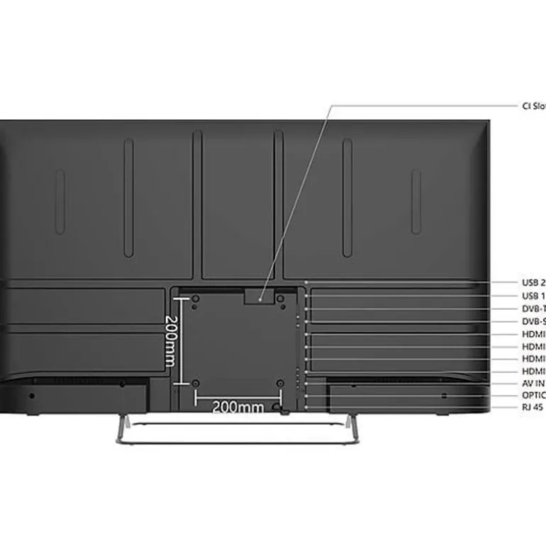 Acabado en gris oscuro con marco fino y soporte estilizado. Se integra perfectamente en cualquier salón.
