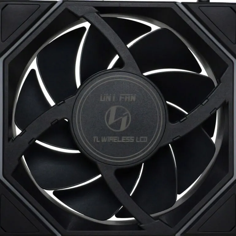 El UNI FAN TL Wireless utiliza material LCP para las aspas del ventilador, un eje central de cobre y cojinetes FDB con 9 aspas estrechamente alineadas (espacio de 0.65 mm), lo que garantiza una apariencia llamativa sin comprometer el rendimiento. El UNI FAN TL Wireless ofrece un rendimiento equivalente al UNI FAN P28, el modelo de mayor rendimiento de la línea UNI FAN.