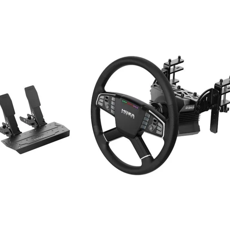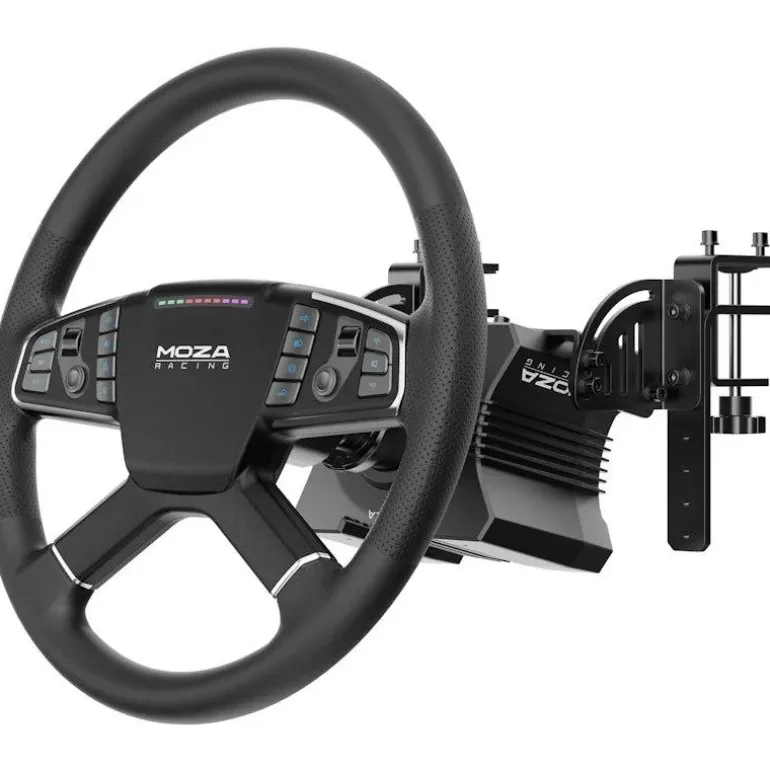 MOZA RS071 Trucking Bundle es un pack diseñado para los amantes de la simulación de camiones, que combina potencia, realismo y comodidad. Incluye la base Direct Drive R5 con un par máximo de 5,5 Nm, ofreciendo una respuesta precisa y fluida en cada giro. El volante TSW de 400 mm reproduce fielmente la sensación de conducción de un camión, con botones retroiluminados, joysticks y levas de aluminio de alta calidad. Los pedales SR-P Lite, con sensores Hall y construcción metálica, aportan durabilidad y precisión en cada pisada. Además, el sistema de montaje rápido y la abrazadera para escritorio o cockpit garantizan una instalación sencilla. Compatible con el software MOZA Pit House, permite ajustes personalizados de fuerza, sensibilidad y luces LED. Una solución completa y lista para disfrutar de la simulación más inmersiva en PC.ç