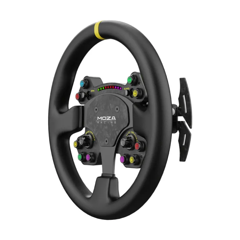 Gracias a la tecnología inalámbrica patentada de MOZA, el RS V2 elimina los problemas de conexión causados por los giros del volante, asegurando una transmisión de señal y energía sin interrupciones. Los botones mecánicos programables ofrecen una experiencia táctil positiva y retroiluminación personalizable en 8 colores diferentes, lo que añade un toque adicional de personalización y funcionalidad al volante. En resumen, el Moza Racing RS V2 Cuero es la elección perfecta para los entusiastas del simracing que buscan un equipo de alto rendimiento y una experiencia de conducción inmersiva.