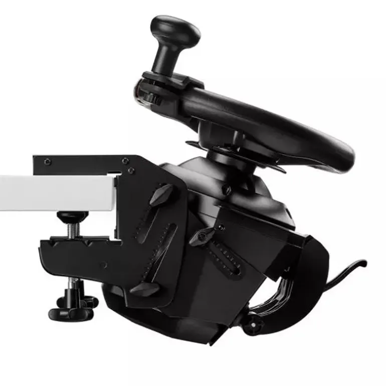 El SimTask Steering Kit cuenta con un sistema de sujeción para escritorios de entre 15 mm y 50 mm de grosor, lo que permite ajustar fácilmente la inclinación y la altura del T128 sin herramientas ni desmontaje. Cambia rápidamente de una posición a otra: desde carreras de coches hasta simulación agrícola o transporte por carretera.