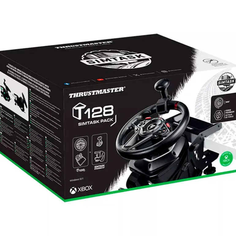 El T128 es compatible con PC (Windows 10/11), Xbox Series X|S y Xbox One. Para lograr una experiencia aún más completa al conducir equipo agrícola, el T128 SimTask Pack es un excelente complemento para el SimTask FarmStick.