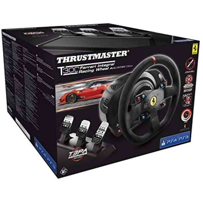 Contenido de la caja: Volante desmontable 599XX EVO, T300 Servo Base, cable de alimentación, juego de pedales T3PA, sistema de fijación, manual de usuario que incluye información de garantía.