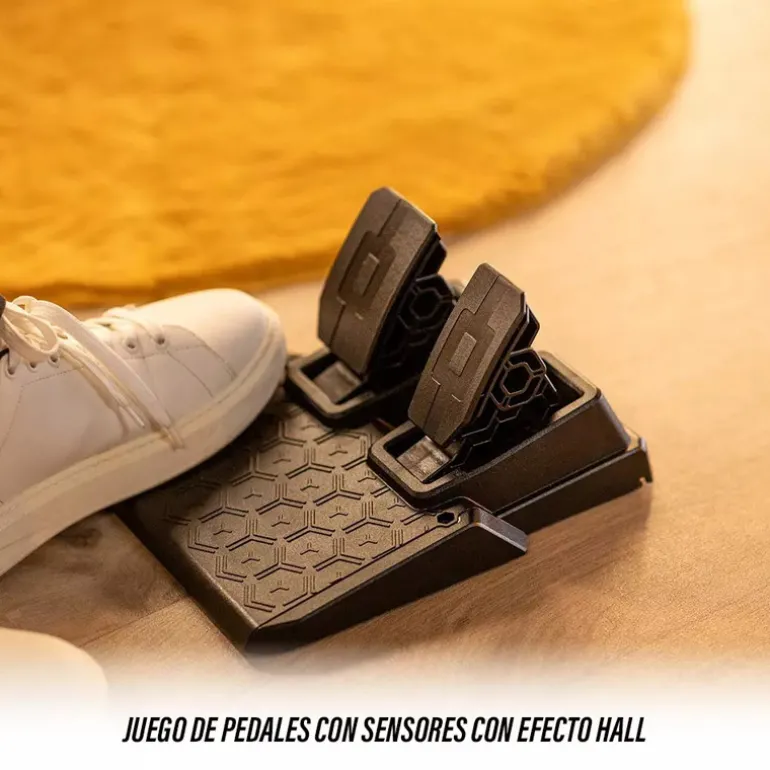 Se incluye un juego de 2 pedales con acelerador y freno. Los pedales cuentan con sensores con efecto Hall H.E.A.R.T. de Thrustmaster para garantizar que el producto mantendrá su precisión nítida durante años. El diseño compacto del juego de pedales permite su instalación y uso incluso en espacios pequeños.